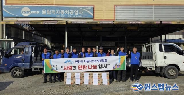 원스텝뉴스 이병희 기자 | 연천군자동차전문정비협회는 지난 9일 관내 소외계층 지원을 위한 ‘사랑의 연탄나눔행사’에 회원 13명이 참여해 연탄 2,000장과 라면 10박스 등 200만 원 상당의 후원물품을 전달했다고 밝혔다.