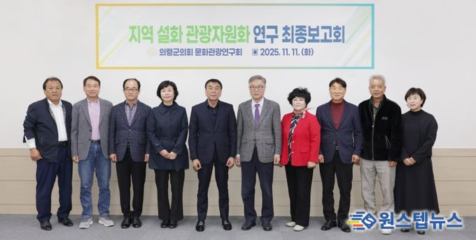 원스텝뉴스 이병희 기자 | 의령군의회는 지난 11일 의원연구단체 문화관광연구회(대표의원 황성철) ‘지역 설화 관광자원화 연구’ 최종보고회를 열고, 지역 고유 설화를 관광으로 살리는 실행전략을 제안했다.