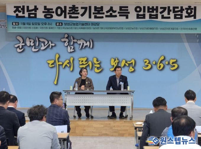 한편 신 의원은 지난 9일에도 전남 보성에서 열린 ‘전남 농어촌기본소득 입법 간담회’에 참석, 현장의 목소리를 청취했다. 간담회에는 보성과 고흥 지역민 100여 명이 참석해 법 제정 전 시범사업의 한계와 문제점을 토로했다.