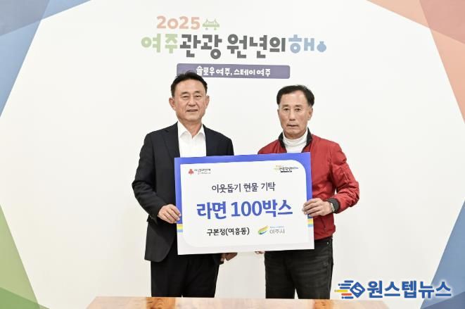 원스텝뉴스 이병희 기자 | 지난 11월 11일 여흥동 주민인 구본정님께서 여주시청을 방문하여 이웃돕기 현물(라면 100박스, 140만원 상당)을 기탁했다.