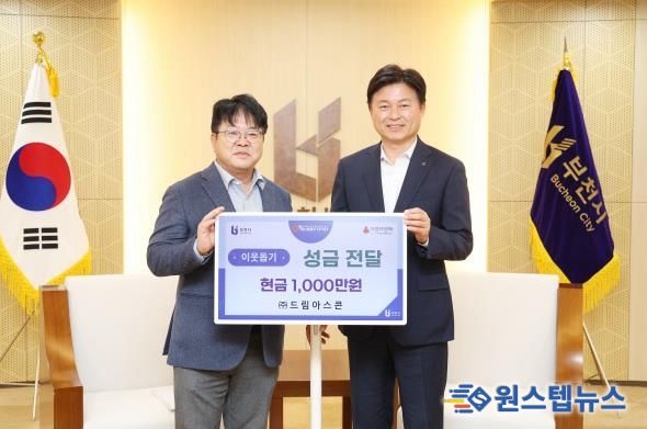 ㈜드림아스콘은 2020년부터 꾸준히 나눔을 실천해오고 있으며, 올해에도 1월 13일과 10월 27일 두 차례에 걸쳐 각각 1,000만 원의 성금을 기탁했다. 특히 10월 27일에는 경기도사회복지공동모금회를 통해 부천시 온스토어 및 온마음펀드 지원을 위한 지정기탁 성금을 전달했다.