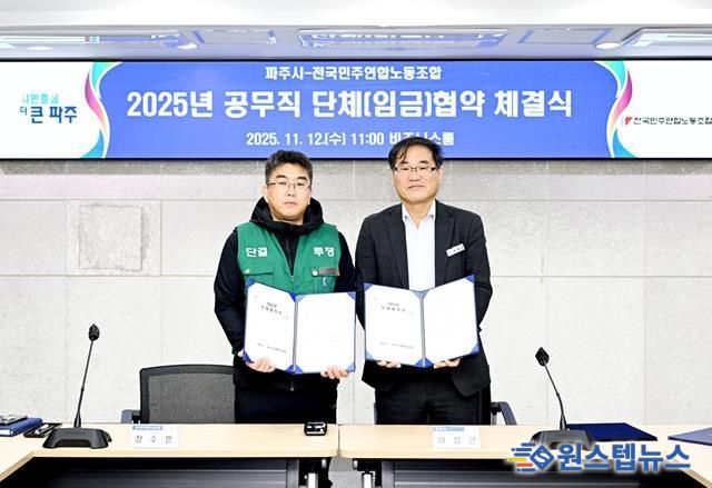 원스텝뉴스 이병희 기자 | 파주시는 전국민주연합노동조합 파주시지부(공무직 근로자의 교섭대표)와 지난 12일 녩년 단체·임금협약’을 체결했다고 밝혔다.