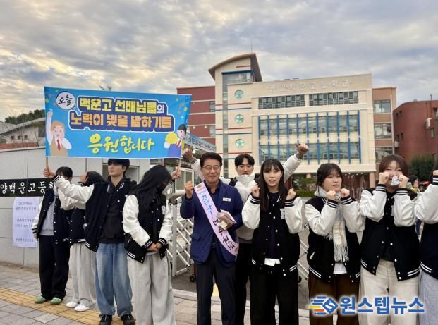 원스텝뉴스 이병희 기자 | 전라남도의회 김태균 의장은 11월 13일 대학수학능력시험 당일 아침 7시 20분부터 광양 백운고등학교를 찾아 수험생들을 격려하고 응원의 메시지를 전했다.