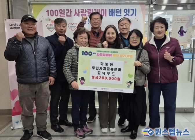 원스텝뉴스 이병희 기자 | 의정부시 가능동주민센터는 11월 11일 주식회사 고덕푸드가 ‘100일간 사랑릴레이 배턴 잇기’에 동참해 성금 20만 원을 기탁했다고 밝혔다.