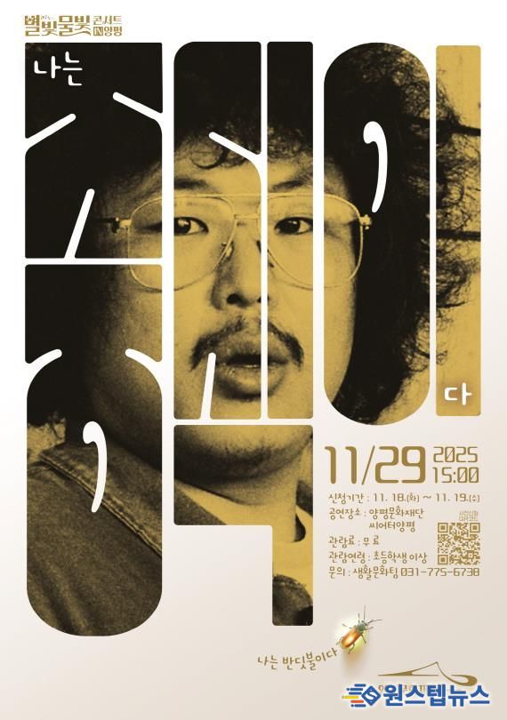원스텝뉴스 천규영 기자 | 양평문화재단은 오는 11월 29일 오후 3시, 양평문화재단 2층 씨어터양평에서 ‘별빛물빛 콘서트 in 양평’ 11월 정기공연으로 ‘나는 반딧불’의 원곡자 중식이의 단독콘서트 ‘나는 중식이다’를 선보인다.