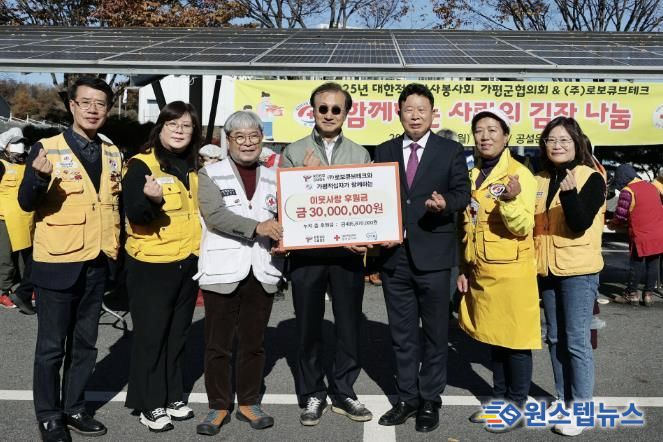 원스텝뉴스 이병희 기자 | 대한적십자사봉사회 가평군지구협의회는 최근 로보큐브테크㈜가 대한적십자사에 기탁한 3,000만 원을 활용해 ‘희망풍차 사랑의 김장 나눔’ 행사를 열었다.