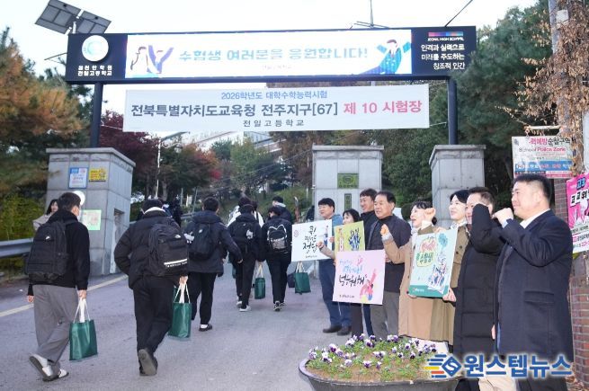원스텝뉴스 이병희 기자 | 전북특별자치도의회 교육위원회(위원장 진형석)가 13일 이른 아침 “2026학년도 대학수학능력시험”에 응시한 수험생 응원에 나섰다.