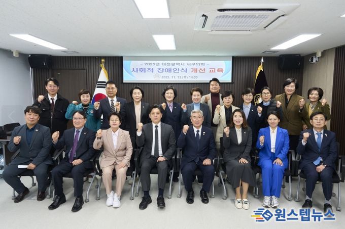 원스텝뉴스 이병희 기자 | 대전 서구의회는 13일 의회 간담회장에서 의원과 직원을 대상으로 ‘2025년 사회적 장애인식개선 교육’을 실시했다.