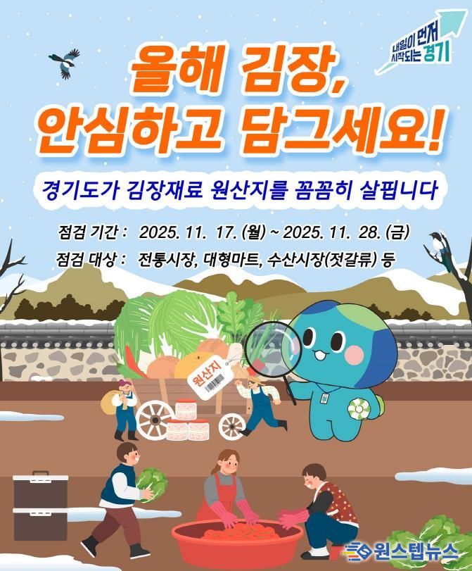 원스텝뉴스 이병희 기자 | 경기도는 김장철을 맞아 오는 17일부터 28일까지 배추김치와 김장채소 양념류에 대한 원산지표시 점검을 한다.