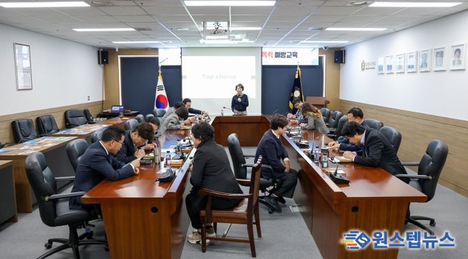 원스텝뉴스 이병희 기자 | 당진시의회는 13일 의회 대회의실에서 시의원과 의회사무국장 등 5급 이상 공무원을 대상으로 2025년도 하반기 ‘4대 폭력 예방 교육’을 진행했다고 전했다.