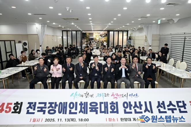 원스텝뉴스 이병희 기자 | 안산시는 지난 13일 한양대 게스트하우스컨벤션에서 ‘제45회 전국장애인체육대회’ 안산시 선수단 환영식을 개최했다고 14일 밝혔다.