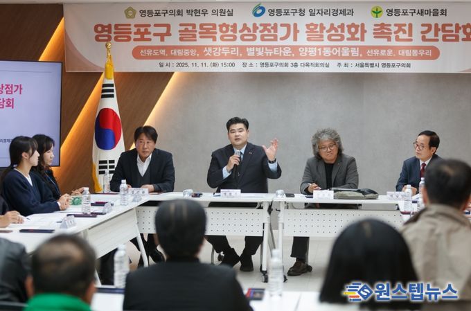 원스텝뉴스 이병희 기자 | 서울특별시 영등포구의회 박현우 의원(여의동·신길1동, 국민의힘 영등포을)은 영등포구청 일자리경제과, 영등포구새마을회와 공동주관으로 2025년 11월 11일 오후 3시 영등포구의회 3층 다목적회의실에서 '영등포구 골목형상점가 활성화 촉진 간담회'를 개최했다고 밝혔다.