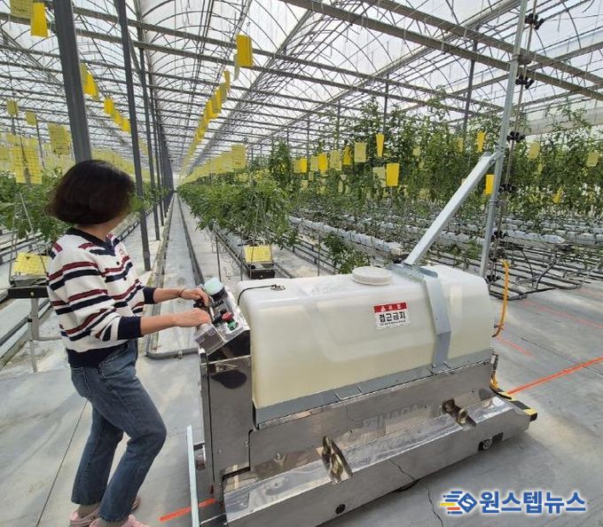 원스텝뉴스 이병희 기자 | 평택시는 농업 현장에서 반복적이고 인체에 유해할 수 있는 방제 작업의 위험을 줄이기 위해 ‘중소형 스마트팜 방제 로봇 시범사업’을 고덕면 시설토마토 농가(규모 0.4㏊)를 대상으로 추진했다.