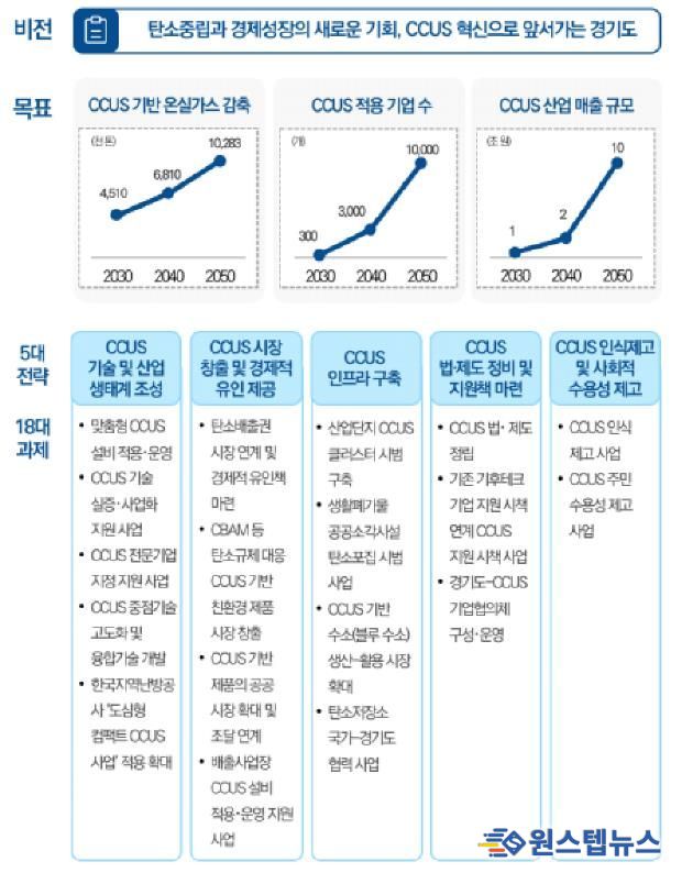 경기연구원은 최근 ‘경기도의 탄소중립 달성을 위한 CCUS 정책 육성 방안’ 보고서를 발간하고, 경기도형 CCUS 육성 로드맵과 5대 전략, 18개 세부과제를 제시했다.