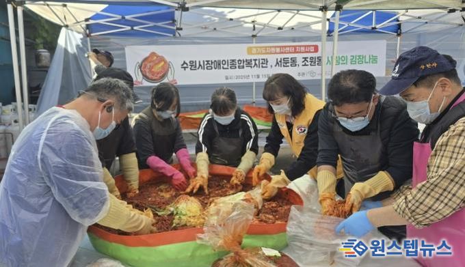 원스텝뉴스 이병희 기자 | 수원시 장안구 조원1동은 지난 15일 사랑을 만드는 사람들 봉사회가 조원1동 취약계층을 위해 김장김치 10kg 50개를 조원1동 행정복지센터에 기부했다고 전했다.
