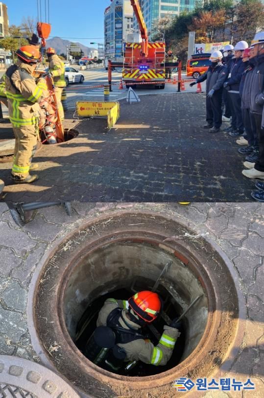 원스텝뉴스 이병희 기자 | 남양주소방서는 18일 KT남양주지점 인근 통신구에서 ‘밀폐공간 특별구조훈련’을 실시했다고 밝혔다.