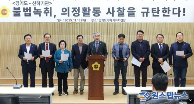 원스텝뉴스 이병희 기자 | 경기도의회 도시환경위원회(김시용 위원장, 국민의힘, 김포3)는 18일 경기도의회 기자회견장에서 진행된 기자회견을 통해 경기도 기후환경에너지국 소속 공직자가 산하기관인 코리아경기도주식회사 직원에게 의원 간담회 내용을 불법 녹음하도록 지시한 사실을 강력히 규탄했다.