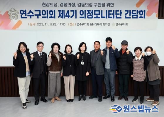 원스텝뉴스 이병희 기자 | 인천광역시 연수구의회는 2025년 11월 17일 오후 2시, 의회 다목적 회의실에서 연수구의회 제4기 의정모니터단 하반기 간담회를 개최했다.