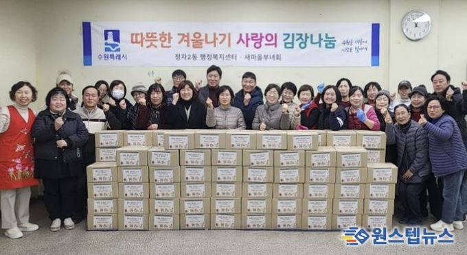 원스텝뉴스 이병희 기자 | 수원시 장안구 정자2동 새마을부녀회는 지난 18일 동 행정복지센터에서 김장철을 맞아 어려운 이웃들에게 따뜻한 정을 전하기 위한 ‘사랑의 김장 나누기’ 행사를 진행했다.