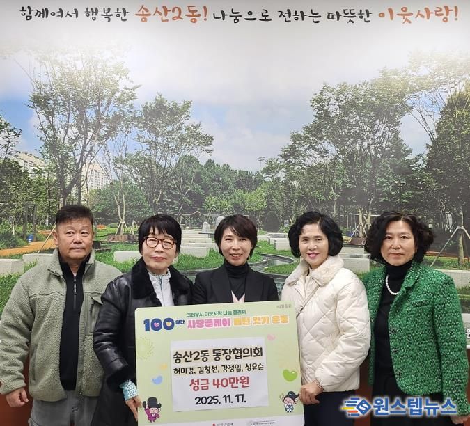 원스텝뉴스 이병희 기자 | 의정부시 송산2동주민센터는 11월 17일 허미경·김창선·강정임·성유순 통장이 어려운 이웃을 돕기 위해 성금 40만 원을 기탁했다고 밝혔다.