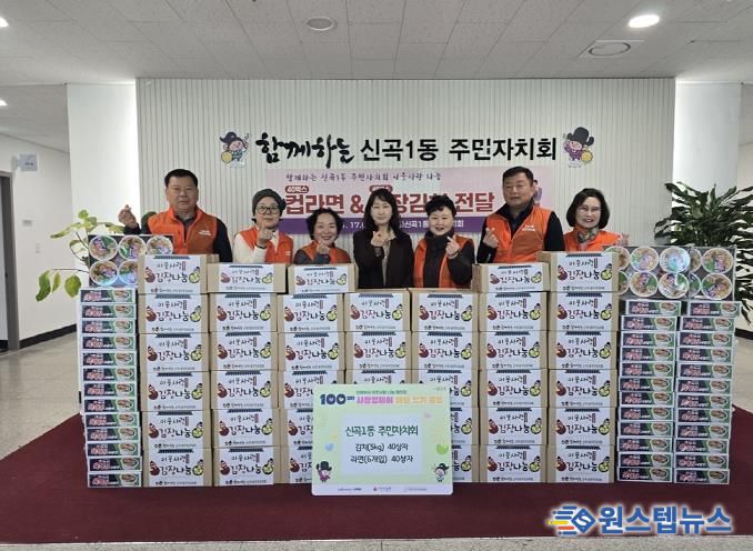 원스텝뉴스 이병희 기자 | 의정부시 신곡1동주민센터는 11월 17일 신곡1동 주민자치회가 ‘100일간 사랑의 릴레이 배턴 잇기’에 동참해 취약계층을 위한 김장김치 40상자(5kg 단위)와 컵라면 40상자(6개입)를 기부했다고 밝혔다.