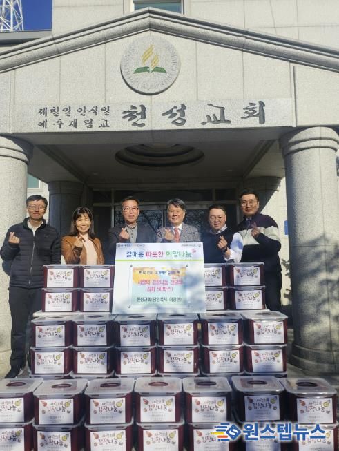 원스텝뉴스 이병희 기자 | 구리시는 지난 11월 18일 천성교회에서 ‘사랑의 김장 나눔 전달식’을 열고, 9리터 용기에 정성껏 담은 김장 김치 50박스를 관내 취약계층에 전달했다고 밝혔다.