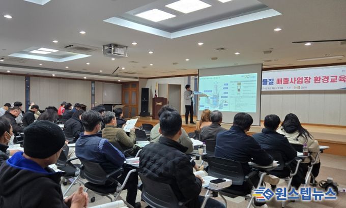 교육은 △업종별 환경법령 위반 사례 △방지시설 운영관리 방안 △환경기술인 법적 의무사항(자가측정, 운영일지 작성, 법정교육 등) △사물인터넷(IoT) 측정기기 부착 의무화 제도 및 그린링크 운영방법 등 실무 중심 내용으로 구성됐다. 또한 △환경시책 소개 △유해화학물질 사고대응 영상교육 △수질오염사고 예방사례 등 다양한 프로그램을 함께 운영해 실질적인 학습효과를 높였다.