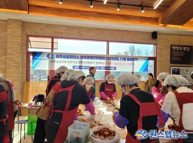 원스텝뉴스 이병희 기자 | 파주시는 지난 17일 파주상공회의소 여성경제인위원회가 ‘사랑의 김장 담그기 나눔 행사’를 통해 파주시 취약계층을 위한 김장김치 10kg 500상자를 기탁했다고 밝혔다.