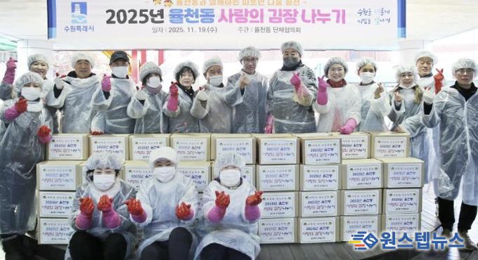 원스텝뉴스 이병희 기자 | 수원시 장안구 율천동은 지난 19일 관내 취약계층 지원을 위한 ‘2025년 사랑의 김장 김치 나누기’ 행사를 개최했다.