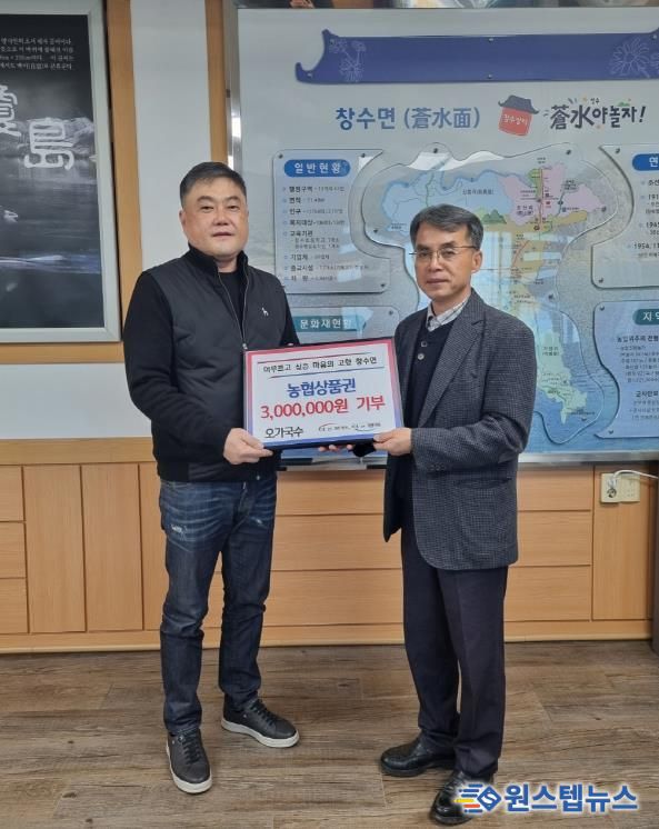 안문종 창수면장은 “지역사회를 위한 기업의 따뜻한 나눔에 깊이 감사드린다”며 “기탁된 상품권은 도움이 필요한 가구에 투명하고 신속하게 전달해 주민들에게 실질적인 도움이 될 수 있도록 최선을 다하겠다”고 전했다.