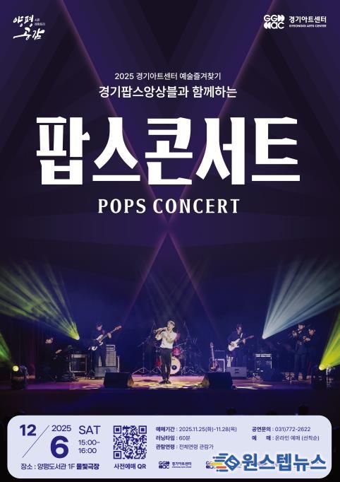 원스텝뉴스 천규영 기자 | 양평문화재단은 오는 12월 6일 오후 3시 물빛극장에서 2025년 시즌레퍼토리 ‘양평공감’의 열 번째 무대인 ‘경기아트센터 예술즐겨찾기’ '팝스 콘서트'를 선보인다.