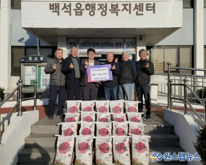 원스텝뉴스 이병희 기자 | 양주시 백석읍 후계농업경영인회가 지난 19일 지역의 취약계층을 돕기 위해 백석읍행정복지센터에 백미 10kg 20포를 전달하며 온정을 나눴다.