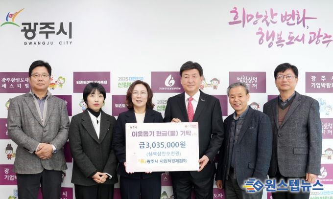 원스텝뉴스 이병희 기자 | 광주시 사회적경제협회 소속 사회적경제 기업들이 ‘2025년 광주시 사회적경제 나눔장터’를 통해 마련한 판매 수익금 303만 5천 원을 20일 광주시에 이웃돕기 성금으로 기탁했다.