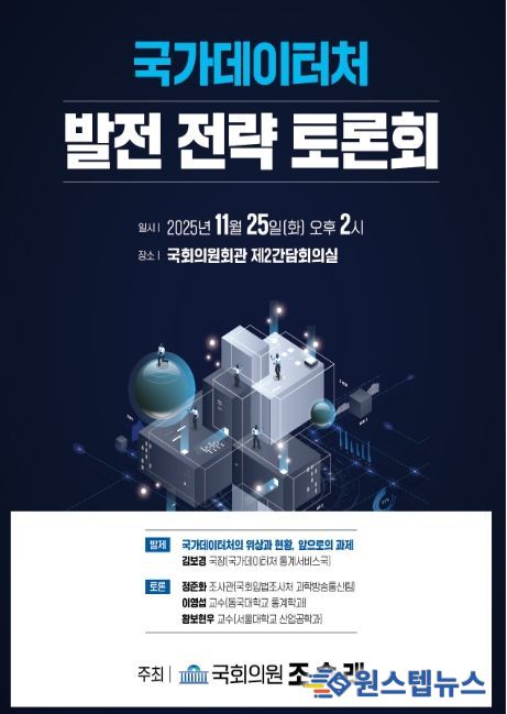 원스텝뉴스 이병희 기자 | 조승래 의원(대전 유성갑, 더불어민주당)이 오는 25일 오후 2시, 국회 의원회관 제2간담회의실에서 ‘국가데이터처 발전 전략 토론회’를 개최한다.