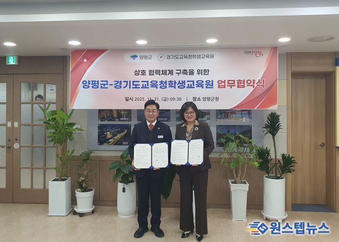 원스텝뉴스 이병희 기자 | 경기도교육청학생교육원이 21일 양평군청(군수 전진선)과 미래형 교육환경 조성 및 지역 사회에 기반한 상호 협력체제 구축을 위한 업무협약을 체결했다.