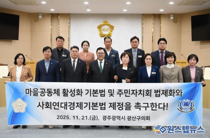 원스텝뉴스 이병희 기자 | 광산구의회가 21일 제301회 정례회 제1차 본회의에서 ‘마을공동체 활성화 기본법, 주민자치회 법제화, 사회연대경제기본법 제정 촉구 건의안’을 채택했다.
