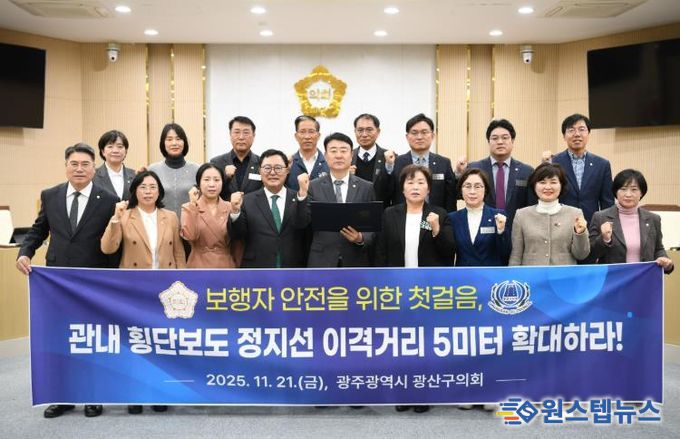 원스텝뉴스 이병희 기자 | 광산구의회가 21일 제301회 정례회 제1차 본회의에서 ‘횡단보도 정지선 5미터 이격거리 확대 설치 건의안’을 채택했다.