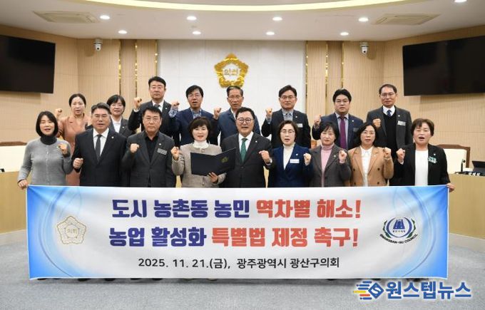 원스텝뉴스 이병희 기자 | 광산구의회가 21일 제301회 정례회 제1차 본회의에서 ‘도시 농촌동 역차별 문제 해소 및 농업 활성화 지원에 관한 특별법 제정 건의안’을 채택했다.