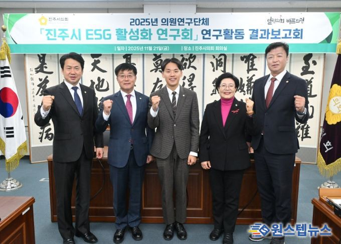 원스텝뉴스 이병희 기자 | 진주시의회 의원 연구단체 ‘진주시 ESG 활성화 연구회’는 21일 올해 연구활동을 마감하는 결과보고회를 열고, 연간 추진 성과와 향후 정책 제언을 공유했다고 밝혔다.