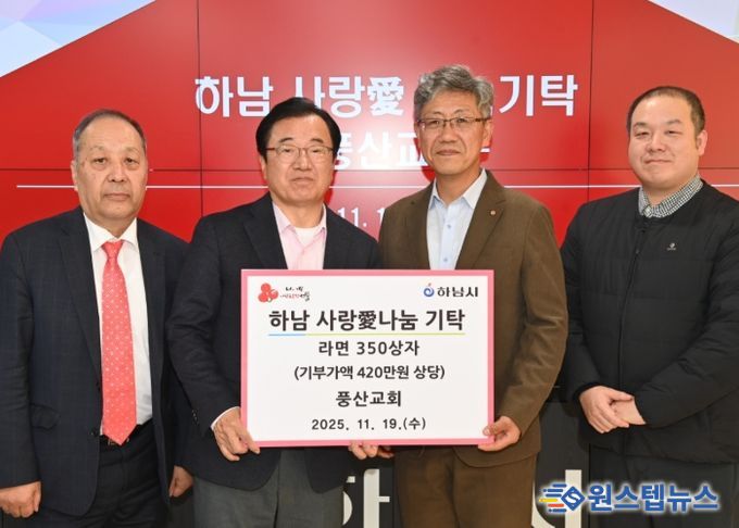 원스텝뉴스 이병희 기자 | 지난 19일, 미사3동 소재 풍산교회는 하남시에 라면 350박스(420만원 상당)을 기부하며 기탁식을 가졌다.