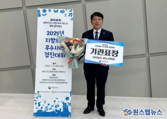 원스텝뉴스 이병희 기자 | 완도군의회는 행정안전부가 주관하는 지방의회 우수사례 경진대회에서 2024년에 이어 2025년에도 기관표창을 수상하게 됐다고 밝히며, 이는 도서 지역이라는 완도만의 특성과 군민의 생활 현장을 반영한 생활밀착형 의정활동이 전국적으로 인정받은 결과라고 설명했다.