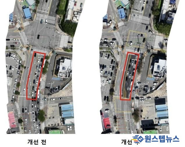 ‘차선 재조정’은 불필요한 대기시간을 줄이고 차선폭을 최적화해 병목현상을 효과적으로 완화한다. 또한,‘포켓차로 연장’은 회전 차량이 교차로를 점유하는 시간을 줄여 정체를 최소화하고, ‘회차로 설치’는 차량 회전 동선을 정돈해 교차로 내 사고 위험을 낮춘다.