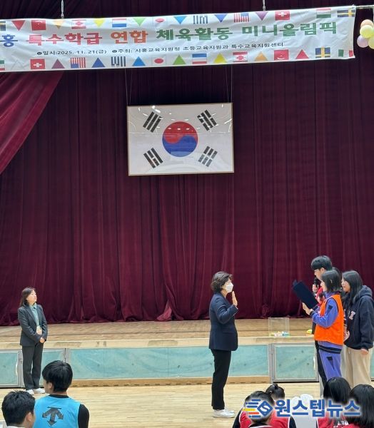 원스텝뉴스 이병희 기자 | 시흥교육지원청 특수교육지원센터는 지난 11월 21일 시흥교육청만의 특별한 체육활동-미니올림픽 행사를 성황리에 마쳤다. '파이팅 해야지! 우린 SH(시흥)학생'이라는 제목의 이 행사는 특수교육대상학생들의 건강과 체력증진을 도모하고 사회적 기술과 정서적 안정을 증진하는 데 목적이 있다.