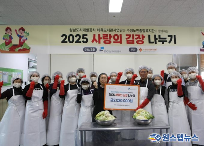 원스텝뉴스 이병희 기자 | 성남도시개발공사 체육도서관사업단은 지난 21일 관내 수정노인종합복지관에서 지역 취약계층 어르신을 지원하기 위한 ‘2025년 김장김치 나눔 봉사활동’을 실시했다고 24일 밝혔다.