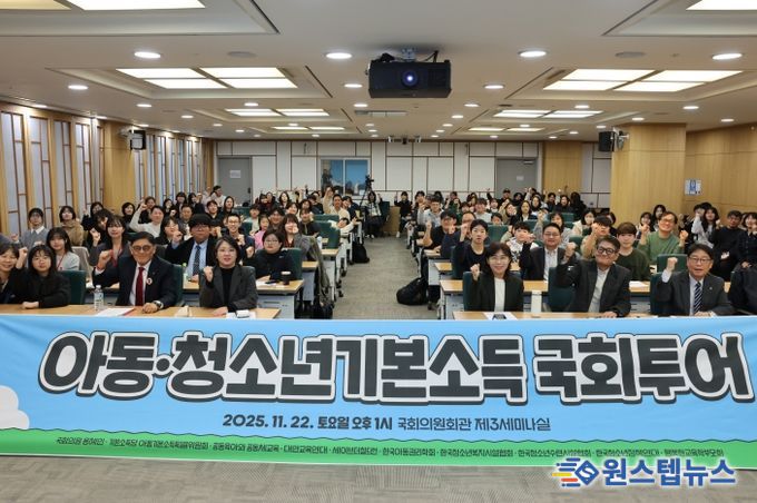 원스텝뉴스 이병희 기자 | 기본소득당 용혜인 의원이 지난 11월 22일 오후 1시, 국회의원회관 제3세미나실에서 '2025 아동·청소년기본소득 국회투어'를 개최했다. 이날 국회투어에는 100명의 아동·청소년·양육자·교육자가 모여 한 목소리로 아동·청소년기본소득을 요구했다.