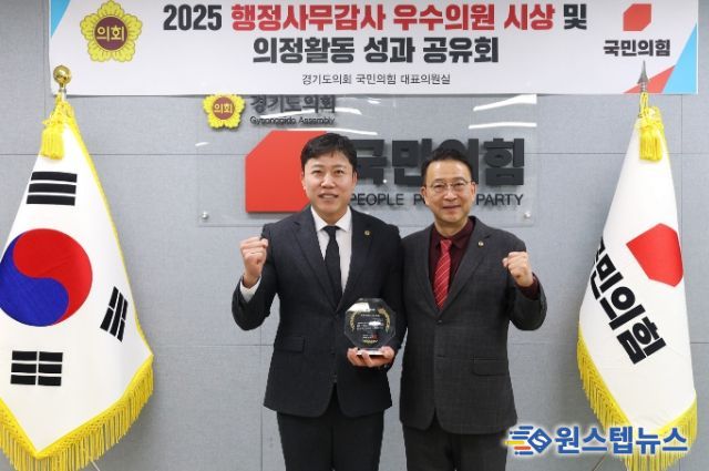 원스텝뉴스 이병희 기자 | 경기도의회 교육행정위원회 오세풍 의원(국민의힘, 김포2)은 11월 24일, 경기도의회 국민의힘 대표실에서 열린 시상식에서, 2025년 경기도의회 행정사무감사를 통해 교육행정 전반에 대한 구조적 문제를 짚어내고 실효성 있는 개선책을 제시한 공로를 인정받아 ‘2025년 행정사무감사 우수의원’에 선정됐다.