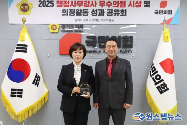 원스텝뉴스 이병희 기자 | 경기도의회 국민의힘 정책수석이자 경제노동위원회 소속 이채영 의원(국민의힘, 비례)은 24일 국민의힘 회의실에서 열린 ‘2025년 행정사무감사 우수의원 시상식’에서, 감사 기간 동안 도민 중심의 정책대안 제시와 구조적 문제 진단에 기여한 공로를 인정받아 행정사무감사 우수의원으로 선정됐다.