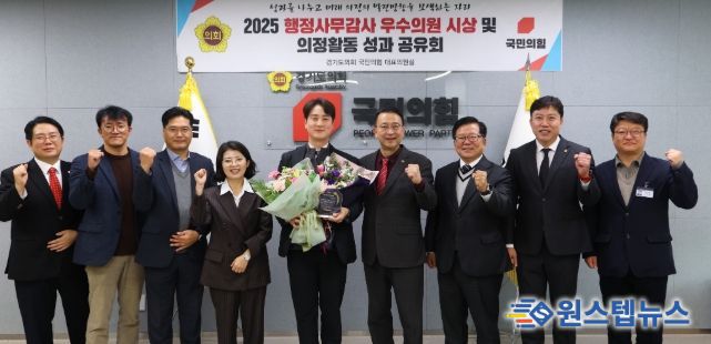 원스텝뉴스 이병희 기자 | 경기도의회 교육행정위원회 김일중 의원(국민의힘, 이천1)이 24일 오전 경기도의회 국민의힘 회의실에서 열린 ‘행정사무감사 우수의원 시상 및 의정활동 성과 공유회’에서 ‘행정사무감사 우수의원’에 선정됐다. 이번 수상은 2025년도 행정사무감사에서 도민 중심의 정책 대안을 제시하며 실효성 있는 민생 교육행정을 구현하는 데 기여한 점이 높게 평가된 결과다.