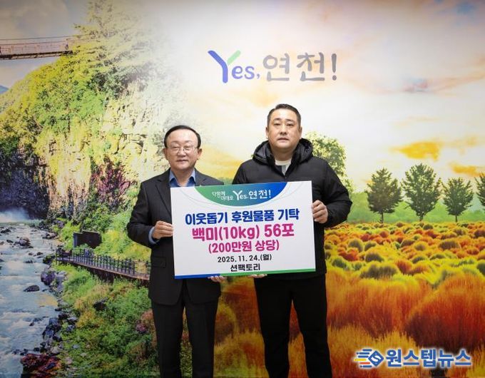 원스텝뉴스 이병희 기자 | 션팩토리는 연천군 미산면 삼화리에 소재한 축산기자재 등 제조업체로 지난 24일 군수실에서 지역사회 상생을 위해 지역 영세 소농인이 생산한 200만 원 상당의 백미10kg 56포를 구매해 어려운 이웃 위한 나눔에 동참했다.