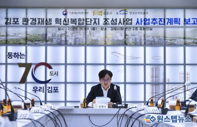 시는 24일 기후에너지환경부와 한국수자원공사가 함께 한 가운데 김포시청 중회의실에서 ‘김포환경재생혁신복합단지 조성사업’ 추진계획 보고회를 열고, 사업구상안을 공유하고 추진 방향을 논의했다.